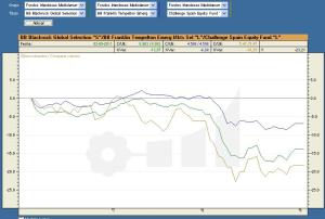 Los fondos de inversión de renta variable han bajado en agosto de forma importante, desde un 7% los emergentes, pasando por un 17% los de bolsa mundial y más del 20% los fondos europeos. En este gráfico de la derecha podéis ver el descenso que han tenido en agosto el BB Franklin Templeton, BB Blackrock, y el Challenge Spain.