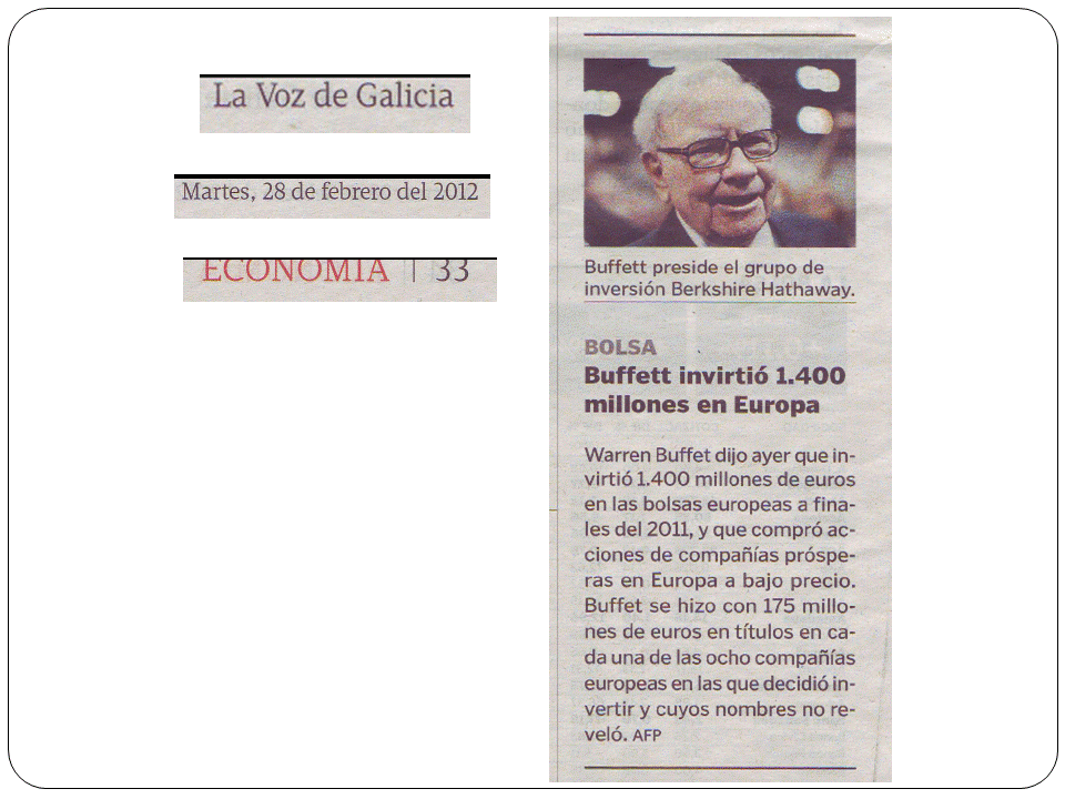 Ahora la pregunta es: «¿ espero a que la situación de la economía mejore y dejo mis ahorros a buen recaudo en depósitos  y productos de renta fija con capital garantizado?, o ¿aprovecho los precios actuales  para invertir y sentarme encima del dinero y esperar a que el crecimiento económico lleve mis ahorros a importantes rentabilidades?»; podeis  ir de banco en banco buscando el mejor Depósito o fondo garantizado, o hacer comoWarren Buffet, que a finales del año pasado  ha invertido «solo» 1.400 millones € en las empresas  de las bolsas europeas, porque según él «están baratas».